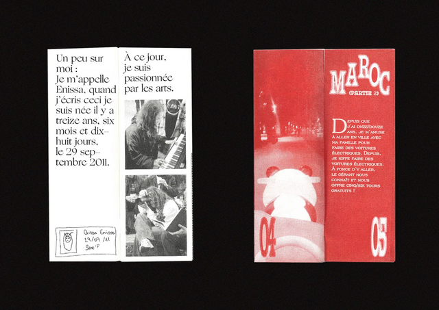 Au sein du Centre Socioculturel de la Baratte à Nevers, un collectif d’adolescent•es engagé•es sur les questions citoyennes s’est monté en 2023. Après deux ans de productions en groupe (livres, expositions, vidéos, podcasts etc.), le collectif décide de parler de ses individualités sous la forme de dix petits livres — un par membre — qui donnent à voir des bribes d’une adolescence française, neversoise, de banlieue, plutôt féminine et contemporaine, à travers des autoportraits subjectifs.
